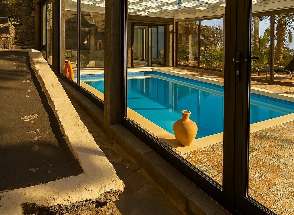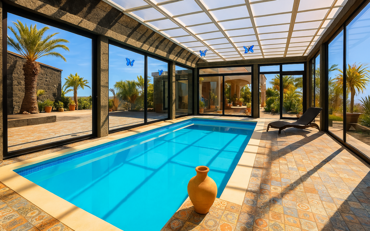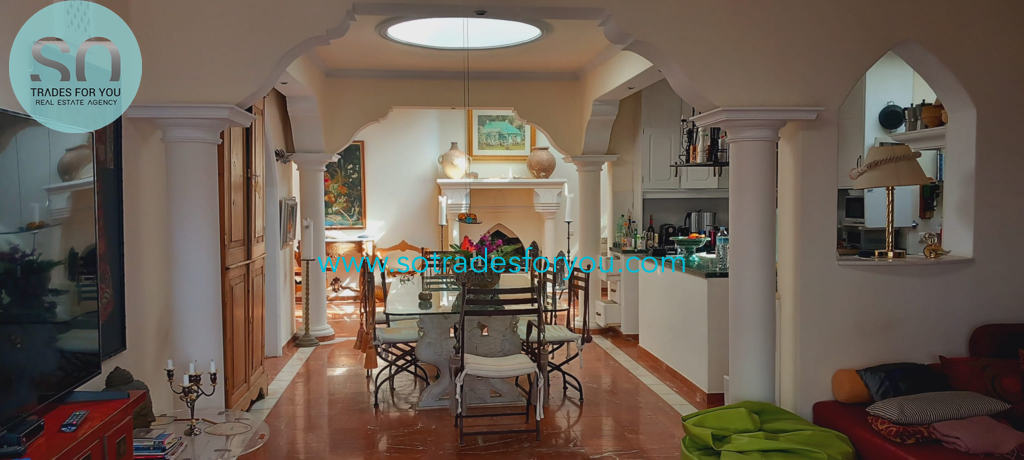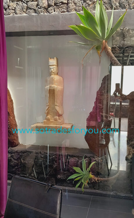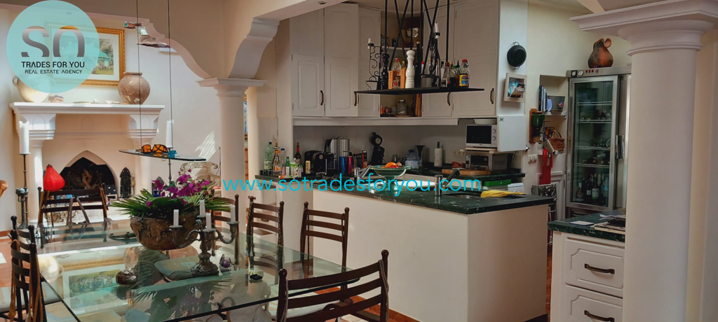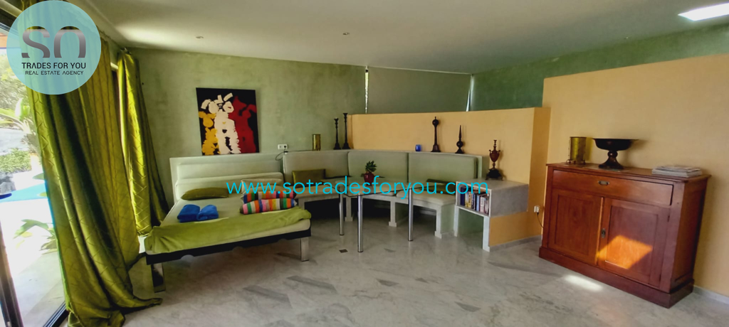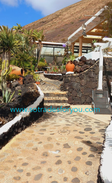 www.sotradesforyou.com offers for sale this impressive and green luxury property in La Asomada, Tías, Lanzarote. This unique property of 750 m2 is located in a privileged location of 40,000 square meters of land, placed on the side of a volcano, surrounded by an oasis of greenery, offering a unique panoramic view that only the natural beauty of the island of Lanzarote can bring you. The real estate part of this property is built on 4 levels, each with a breathtaking view of the ocean and the surrounding area. The main house, of unique elegance, opens onto a large bright patio, leading to a large living/dining room, extended by a large terrace overlooking the green garden with multiple areas of tranquility. You will also find 3 en-suite bedrooms, each including its own dressing room and bathroom. A large kitchen with central island, fully equipped, a wine cellar, a large covered garage for two cars, as well as a heated indoor swimming pool. The numerous interior spaces demonstrate great comfort, offering your